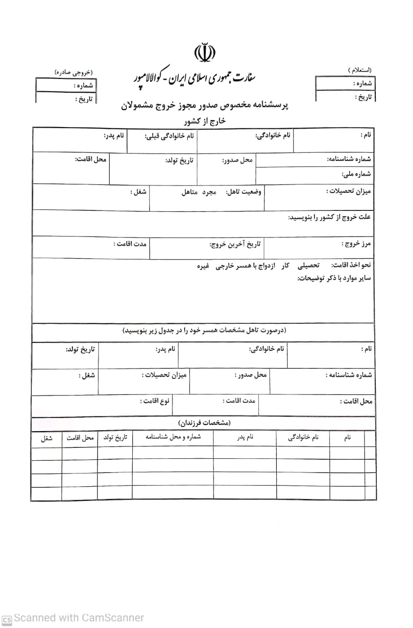 - استعلام از نظام وظیفه جهت مجوز مهر خروج مشمولین (۱۰روز کاری در ایران) - فرم مربوط تکمیل گردد و به کنسولگری مراجعه فرمایید